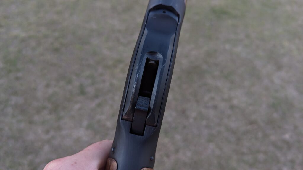 Make sure you watch your fingers on the forend. It’s easy to hit the barrel, and the barrels get hot awfully quickly. Loading the gun is also not super straightforward. The magazine tube sits under the barrel, which makes it tougher to access. You won’t reload anything but the chamber quickly.