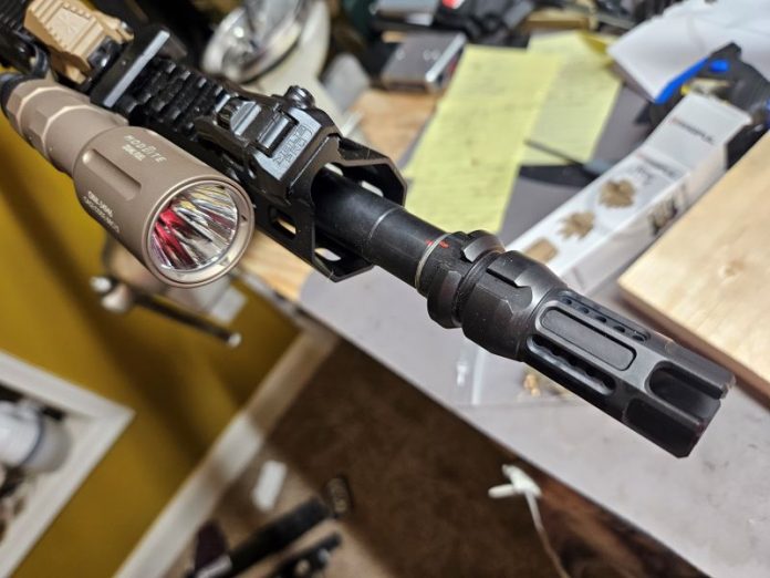 First, let’s do some quick math. If I have a 13.7 inch barrel, what do I need to permanently attach to make an overall length of 16 inches? Good work, at least a 2.3 inch muzzle device. Which as you may know, there isn’t a crazy large amount of these on the market.