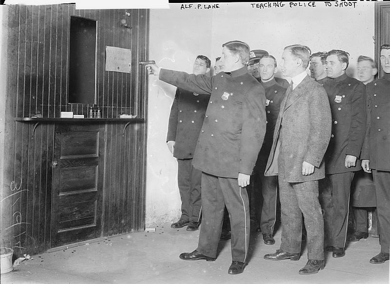 These Pocket Hammerless guns held more rounds than the standard revolver, and the M1908 version in .380 ACP outperformed the little .32 Colt revolvers. To teach NYPD detectives how to shoot the city of New York, hired Olympic Gold Medalist Alfred Lane.