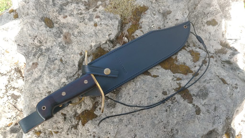 The handle features Rosewood scales that bolt onto the grip and provide a nice fat, shock-reducing grip. At the top of the handles sits an S-shaped handguard perfect for preventing slip and, of course, blocking and parrying. At the bottom of the blade sits a pronounced ledge to keep your hand in place.