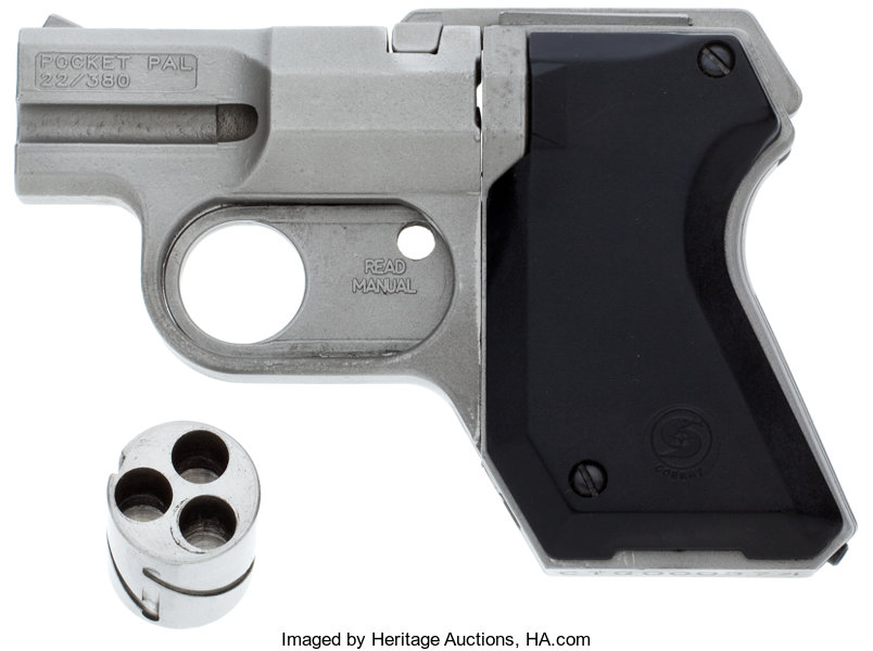 The Pocket Pal is a truly cool weapon. It’s a revolver, kind of, that has two barrels and comes with two cylinders. Users would have to swap the cylinders on damnd and could change the caliber. The cylinder completely enclosed the pistol, and it was a double-action-only setup that looked more like a small automatic than a revolver.