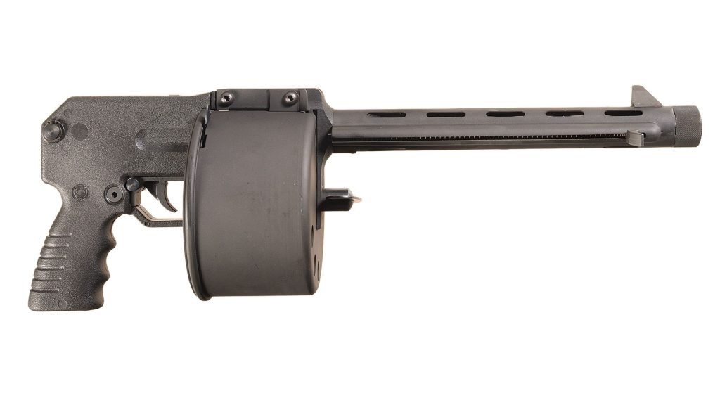 Overall it looks like it came from a dystopian future film. It has a collapsing stock described as painful but does make it a compact 22 inches long when the stock is collapsed. A perforated handguard gives you that TEC-9 vibe as well. It’s been described as the worst shotgun ever. I really hope I get the opportunity to own one.