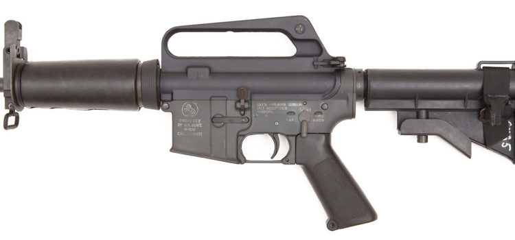 The original Colt SMG, model R0635, sports a 10.5-inch barrel, a CAR 15 stock, and a modified M16 upper and 9mm lower with a magazine block pinned in place. The DOE SMG took the Colt SMG and gave it the German ‘K’ treatment and made it a good bit smaller.