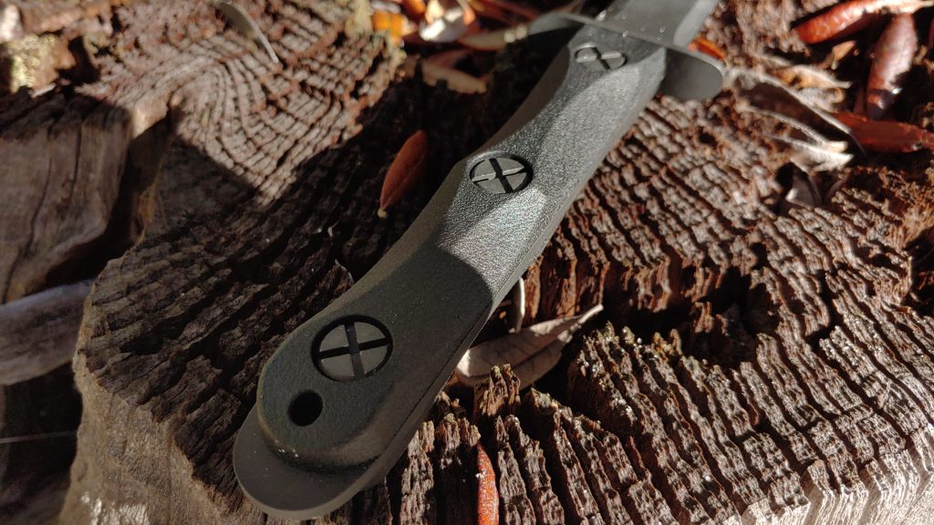 I drove this blade into an 8×8 beam of wood over and over, and my grip never slipped. If it had, the small cross guard would have protected my hand without issue. Until I had an Ek Model 4 in my hands, I never realized how awesome this grip design is. G10 is great, and I love it, but an aggressive G10 texture can rub the hands with hotspots, no such issue here.
