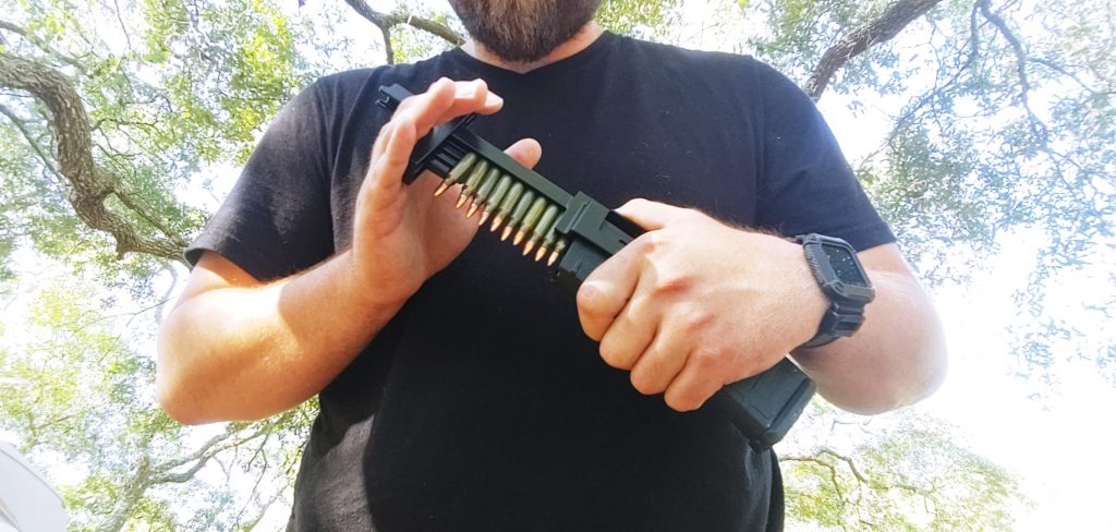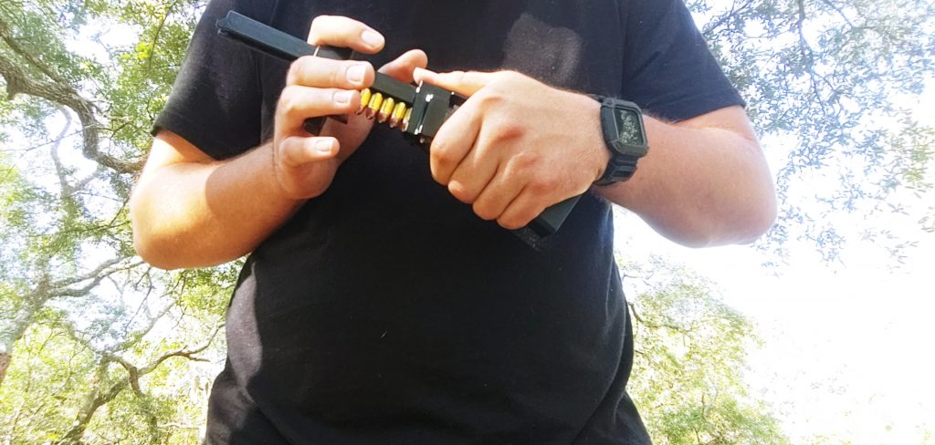 I can load a thirty round magazine in about thirty seconds from the box. This isn’t trying to be fast, just casually loading one mag at a time. Sliding the loader’s channel over the rounds makes it much faster to load mags. Dropping a few in at a time works well too. Outside of being faster, it’s also less tiring on the hands and thumbs, which ensures your hands are rested and strong for that range time.