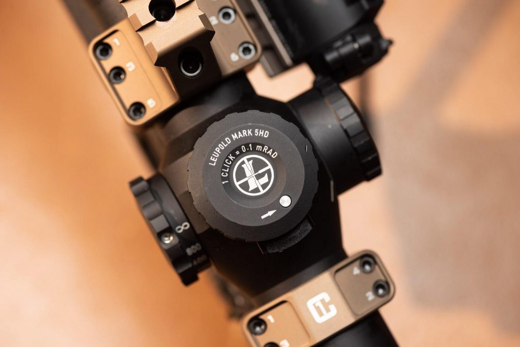 The Leupold Mark5HD features the patented Mil-grid reticle. Weighs 26 ounces and measures 12.06 inches long. This makes it lighter and shorter than the previous optic. It is First Focal Plane (FFP). FFP is needed in this application, when magnification is adjusted the reticle gets larger and smaller precisely with the magnification adjustment while keeping subtensions correct. The Mark5HD also more elevation travel than the Mark4 and is 3.6-18, 5-25, or 7-35 power.