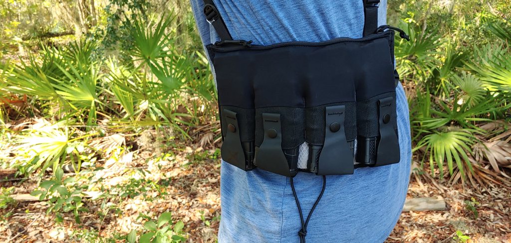 Most bandoliers just kind of hang off your side like a man’s purse. These were an old school means to carry ammunition and tended to flop around and swing when loaded down. The Firebase Parabellum doesn’t face that challenge. Instead, it uses a series of straps that secures the bandolier in one location. It doesn’t flop or shift when you run. It barely moves and offers a consistent spot that allows you to access your magazines.