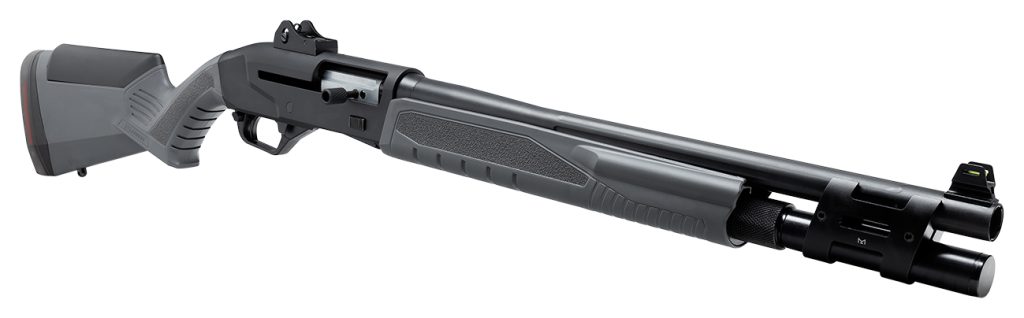 The Benelli M4 gives us a system that can handle a wide swath of rounds, induing low recoil buckshot and even the oddball 2.5-inch loads from Nobel Sport. The Benelli M4 has solid ergonomics but is dated compared to today’s modern shotguns. It’s also fairly expensive and comes from Pizza-land with a neutered five-round tube and fixed stock.