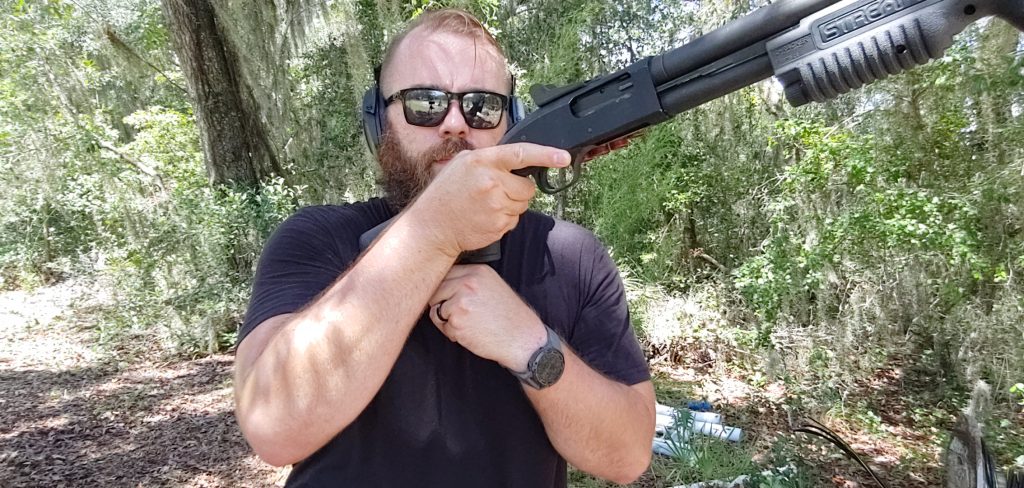 Reach rearward with your non-dominant hand with your pointed finger pointing at you. Pinch and grip, and as you do, rotate your wrist forward, and you can shove the round into the tube. Where the Flash 5 is a bit slower than a side saddle is in an emergency port reload. It lags behind by half moment or so but isn’t painfully slower.