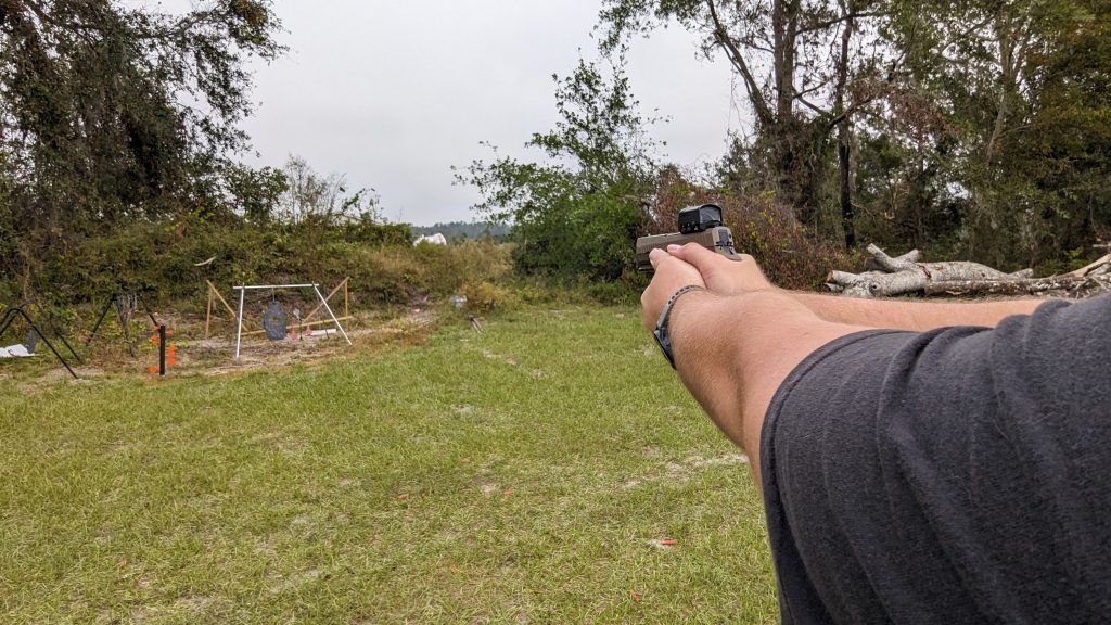 The qual isn’t too demanding on your ammo supply. You’ll need at least 40 rounds of ammunition. The Florida Police Handgun qual demands a handgun, and our county issues 9mm SIG P320s. I used a SIG P320 and grabbed a tactical belt with a duty-style holster. You’ll need at least two magazines. Also, it’s a timed shoot, so bring your shot timer.