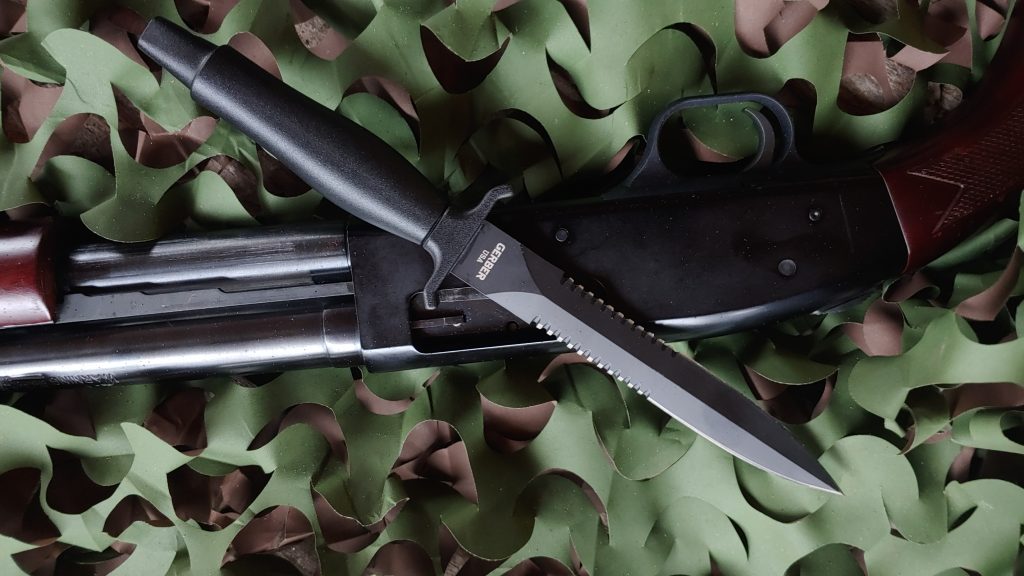 The modern variants are made from 420 HC stainless steel instead of L6 tool steel. L6 is a much better choice for a fighting knife but would drive the price up. Personally, I’d pay the higher price for the L6 steel, but the 420 HC steel keeps the Gerber Mk2 priced under a hundred bucks. Most people buying them are likely buying them for their historical significance and not as a practical knife.