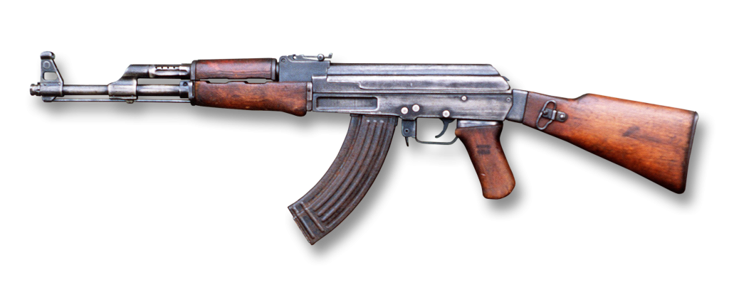 Rewind time to 1979 and Karl is carrying an Kalashnikov. A gun Leland describes as the best assault rifle in the world. Karl and several other terrorists wield the AK series. This is the weapon Leland wisely ditches the Thompson for in the film. Sadly no one ever wields an AK in the book with a single hand.