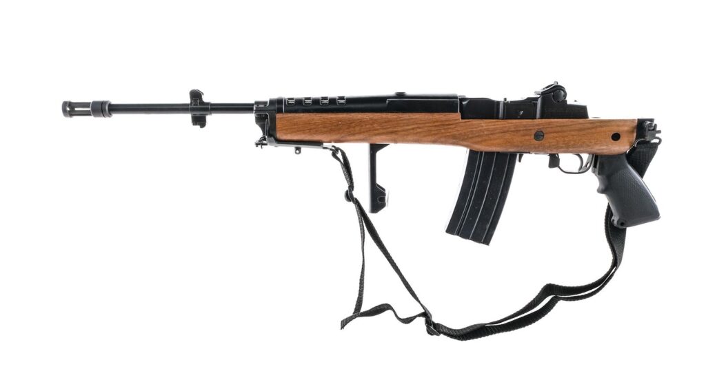 The Morita Mk 1 Carbine is a custom shell built around the AC-556. The AC-556 is the select fire assault rifle variant of the Ruger Mini-14. The shell is composed of the old-school Muzzlelite Bullpup stock kits that were around for Ruger rifles.