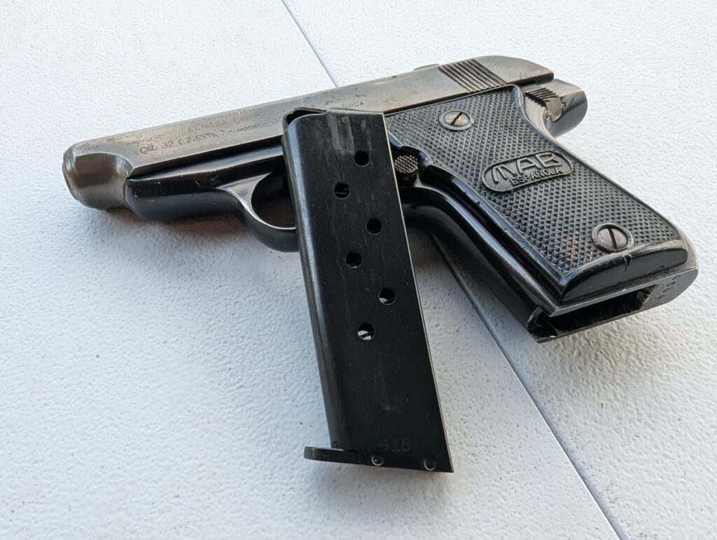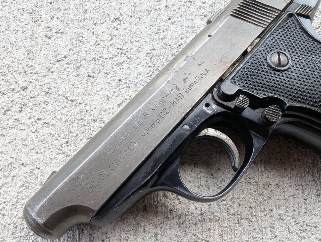 MAB stands for Manufacture d’armes de Bayonne and is a French firm. As mentioned, my GZ-MAB is a Spanish-produced pistol. MAB produced the Model G and GZ until 1962. They licensed the designs to Echave y Arizmendi, which is located in Eibar, Spain. Because Europe is tiny, Bayonne is only about 90 minutes from Bayonne. Echave y Arizmendi became Echasa, which is stamped on my gun.