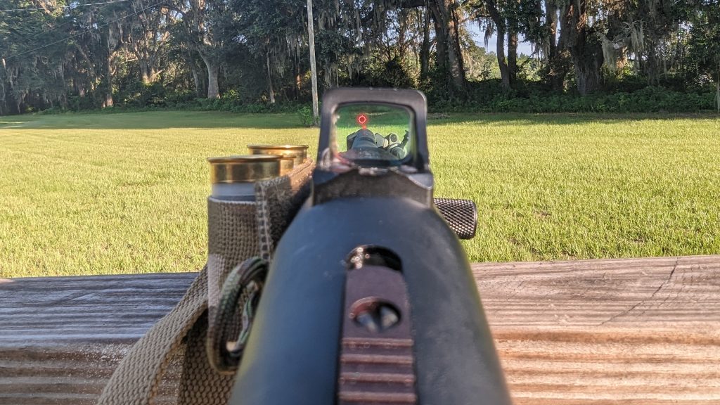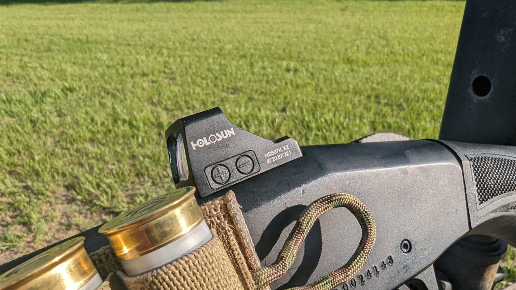 Low enough that I could co-witness with the high visibility bead sight sitting at the end of the barrel. Low is good when it comes to shotguns and optics. You tend to want to avoid having height over bore issues with a gun designed explicitly for close-range shooting. If the 507K could keep working when dealing with the forces of the slide reciprocating, then it can deal with shotgun recoil.