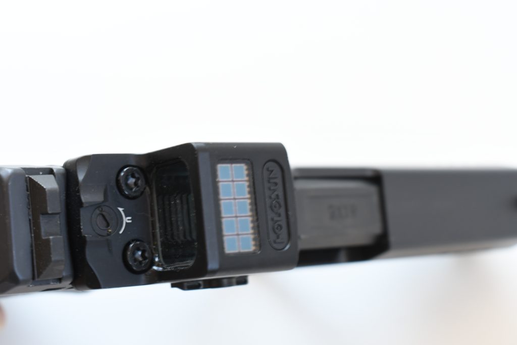 The EPS Carry can be had with red or green LEDs and an MRS (multi reticle system), fixed 2 MOA or 6 MOA dots. The unit that Big Tex Ordnance kindly loaned me is the MRS version, which has three different options: a 32 MOA ring + 2 MOA center dot, an empty 32 MOA ring or a plain 2 MOA center dot. I think that the combination reticle works very well on a micro-dot that’s paired with a smaller, less precise pistol, and it’s something I want to keep exploring further. The EPS Carry ships in pretty much the same foam padded small plastic case that all Holosun reflex sights include along with the complimentary T10 Torx combination tool that’s useful for adjusting windage and elevation and dealing with T10 screws in a pinch. It’s always a good idea to properly torque all hardware down to recommended specifications for reliability with slide mounted reflex sights. And like with most other Holosun pistol dots, the battery tray can be conveniently accessed from the right side of the unit. The EPS Carry uses a single CR-1620 battery which has an estimated 50,000 hour battery life. The EPS Carry has 12 different brightness levels: 2 for night-vision and 10 for daytime use. Tiny buttons are located on the left side of the unit’s external 7075-T6 aluminum housing, and like any other Holosun optic, on/off, reticle changes, locking and brightness adjustments function in the exact same way. The “roof” of this particular EPS Carry has a row of solar cells, and Holosun makes use of their Solar Failsafe function (not all EPS Carry models have the Solar Failsafe feature). The Solar Failsafe system is designed to power the reticle by gathering ambient light if the battery is dead. Lastly, like many other popular Holosun sights, the EPS Carry also includes Holosun’s Shake-Awake technology.