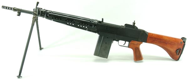 The resulting battle rifle used a short-stroke gas piston with a tilting bolt. It used modified M14 magazines and was selective fire. The rifle had an integrated bipod and shoulder rest for automatic fire purposes. The Japanese decided to use a reduced-power 7.62 NATO round because their troops found the full-power round difficult to control. The weapon could safely fire standard 7.62 NATO, but that accelerated wear and tear.