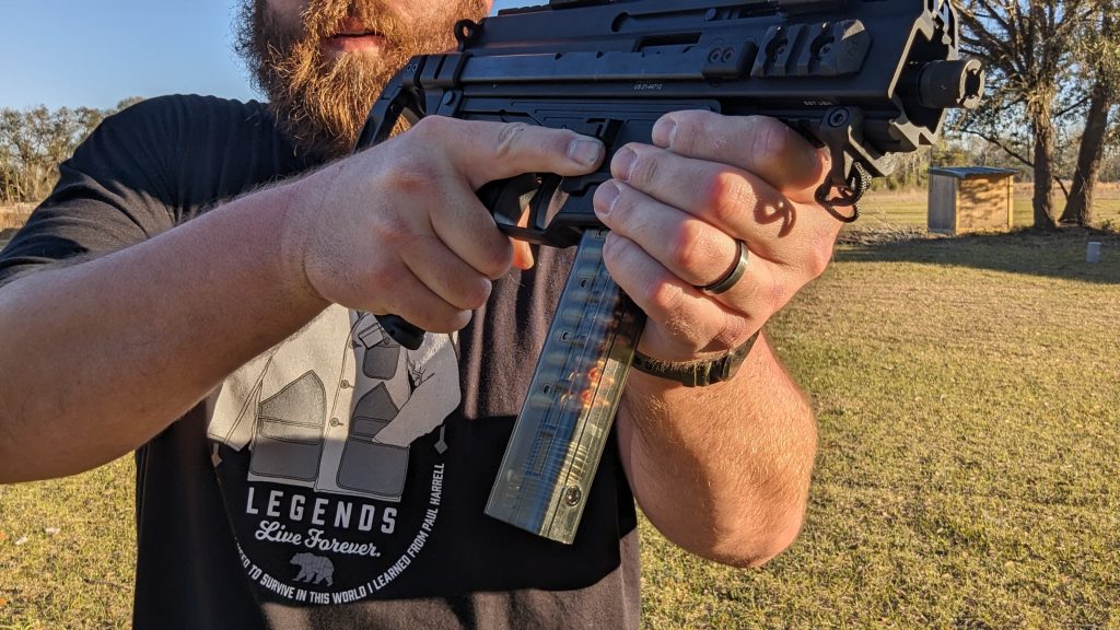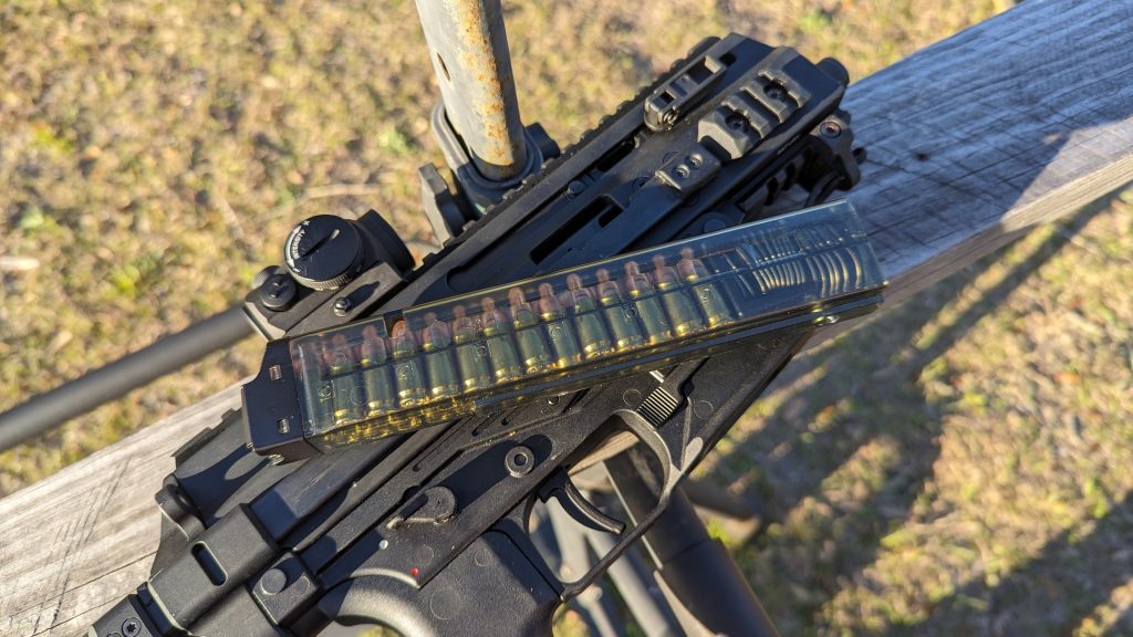 With a single KCI APC9 magazine, I hit the range, and to quote Frank Reynolds, I started blasting! In a safe and proper manner. Using my ammo to run drills rather than diving into the temptation to mag dump into trash I was able to track feeding reliability. I used a mixed bag of ammo for testing, with the majority being brass-cased 115-grain rounds. I mixed in some hollow points, some 147-grain, and some steel-cased stuff to find a weak point. In terms of just feeding, the magazine didn’t falter or fail. I loaded on an open bolt, a closed bolt, and more. There were no malfunctions to speak of.