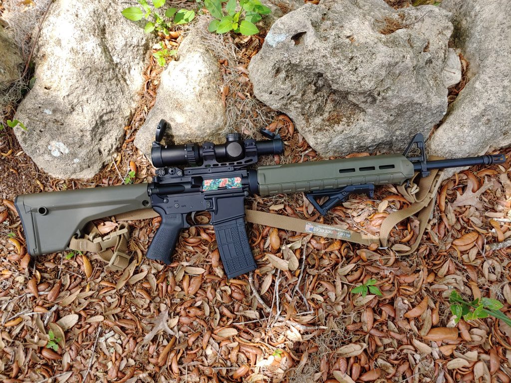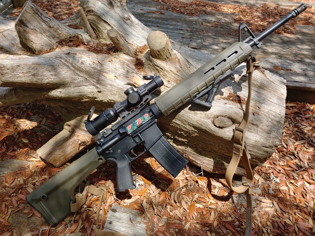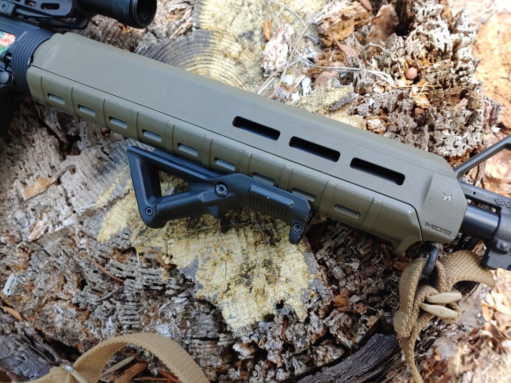 Modular and much lighter rails now exist, which makes the gun less front heavy. I went with the matching Magpul handguard, so the colors matched! Finding modular handguards for a rifle with a front sight base with a 20 inch barrel isn’t always easy, and Magpul offers a proven option.