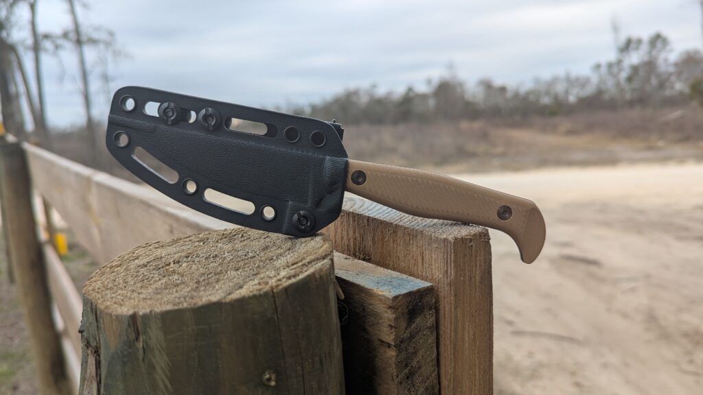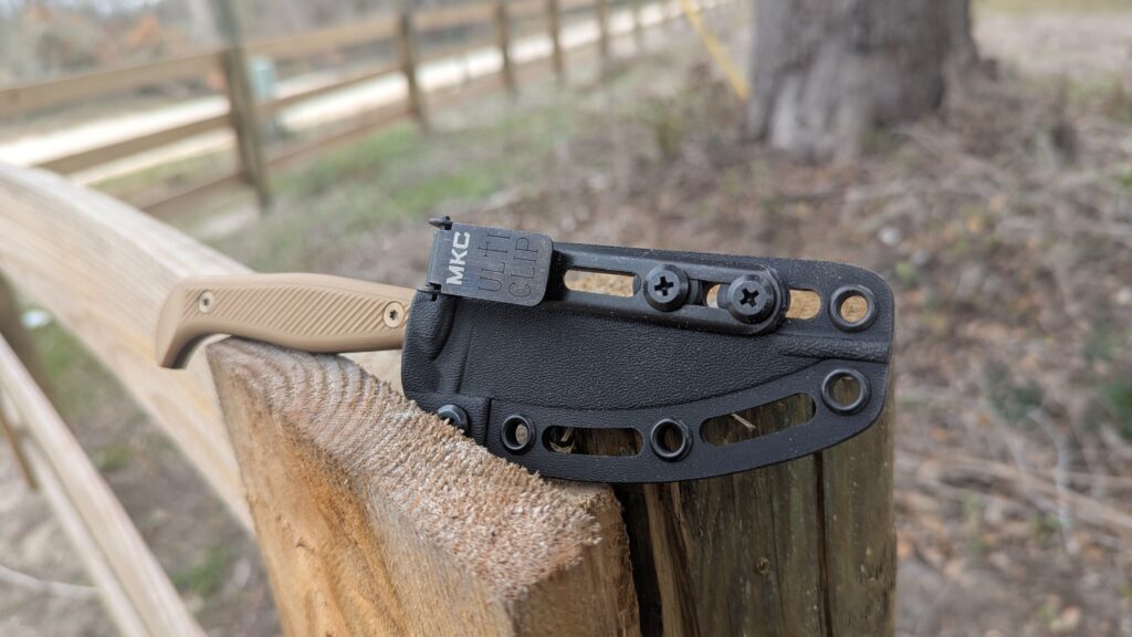 The Battle Goat comes with a polymer sheath equipped with an Ulti-Clip. This could be easily replaced and swapped for any number of different attachment methods. The sheath is compatible with all the popular systems.