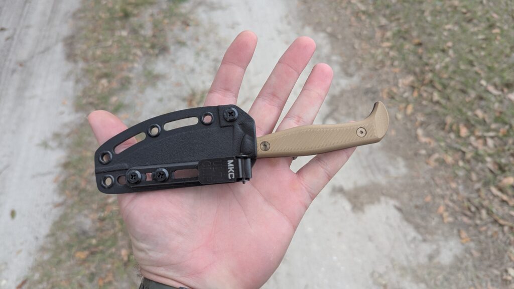 The MKC Battle Goat exceeds expectations. Let’s start with the grip. The aggressively textured G10 material locks the weapon in your hand and provides a very stable grip. Even with gloves, the G10 handle provides a solid, locked-on grip. In fact, it might be better suited for use with gloves.