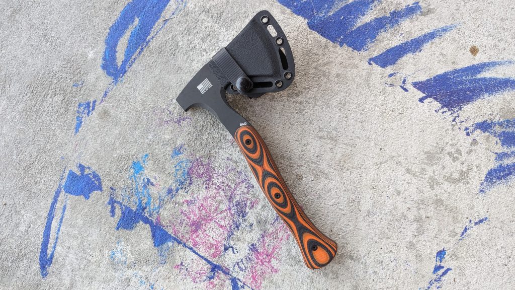 The Hellgate is designed to be compact and easily carried but also made for heavy-duty use. It’s supposed to punch above it’s weight. That weight is only 14.9 ounces. It’s a little longer than 10 inches overall. The Hatchet is made from 52100 ball-bearing steel, which, according to knife nerds, is a very rugged steel. It doesn’t chip or break easily, and it can get quite sharp.
