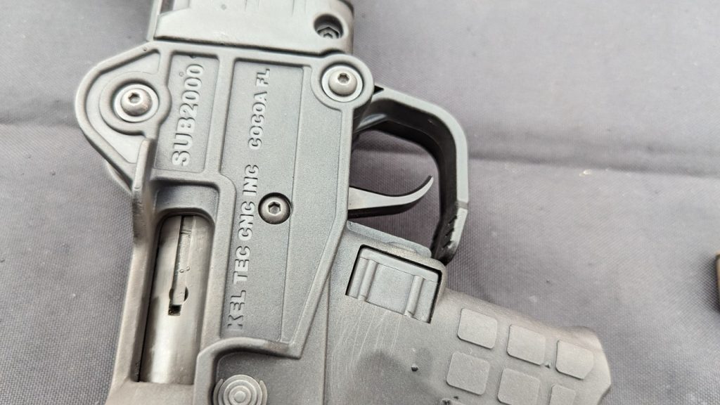 The trigger is no longer plastic but is made from aluminum. It’s also a much better trigger pull. It’s smoother, lighter, and all-around improved over the plastic-on-plastic feeling of the original KelTec SUB 2000 and the Gen 2 model. The receiver also received an update with a built-in shell deflector.