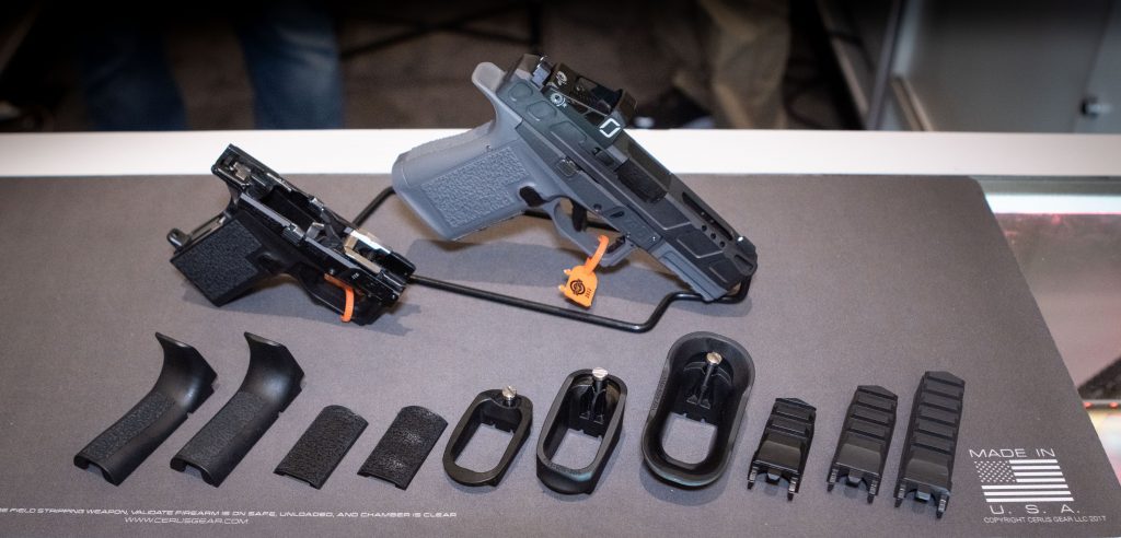 Selectable by the end user back straps, front straps, magazine well and capacity, and the dust cover rail length. Just add Glock or Glock compatible slide and viola pistola.