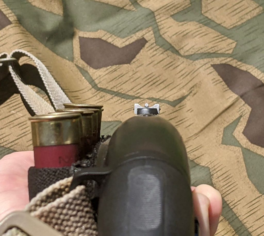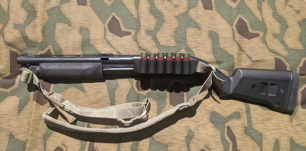 The remainder of M’Bogo’s daily outfit consists of a Magpul 870 SGA stock, a Vang Comp +1 tube magazine extension, a Vang Comp Big Dome crossbolt safety, a Vang Comp follower, a GG&G sling mount adapter, a Hogue Overmold fore-end, and last but not least, M’Bogo’s receiver is configured to use Vang Comp’s velcro card side saddles.