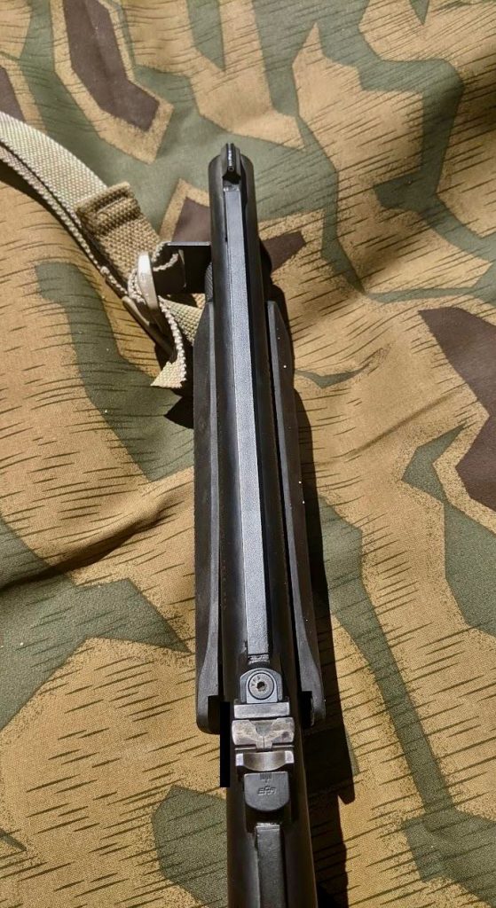 Originally, Matt was planning on installing a pistol sight on the front with a folding rear sight. After consulting with GT, the head gunsmith at Vang Comp, GT devised a more elegant solution utilizing the safari style sight module with dual rear sights. It was the implementation of this safari style sight system by GT that inspired the name M’Bogo on this Remington 870 SBS build.