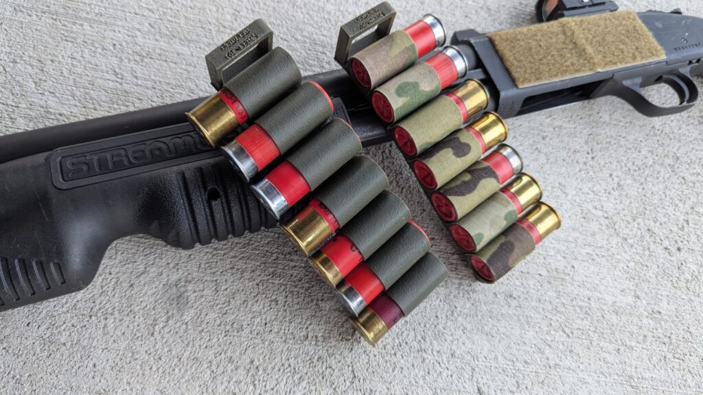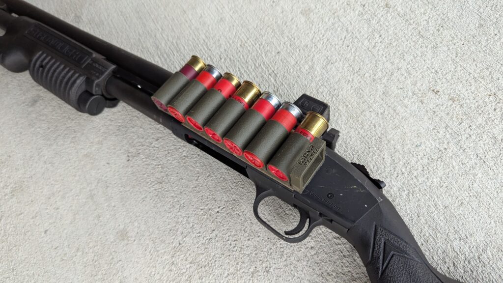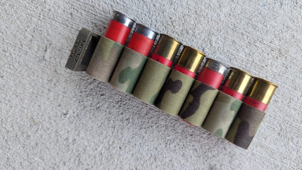 Additionally, it doesn’t fold or move. A lot of elastic side saddles will eventually start curling inwards. This makes drawing shells difficult. That’s not the case with TPU; it comes flat and stays flat. Pew Pew Koncepts produces seven-round shotgun side saddles and will be releasing an 8-round side saddle soon.