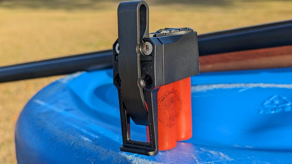 The Pineshot comes with a clip that allows it to mount to nearly anything. The clip or universal mount, as King Competition calls it, can be mounted anywhere and to anything. It can work on a belt, on MOLLE, on a pocket, or even tied to a lanyard around the neck. You can put it nearly anywhere and draw the ammo with ease. It’s honestly pretty genius and easy to remove and replace as necessary. I’m envisioning a MOLLE belt complete with Pineshot as the bandolier of the future.