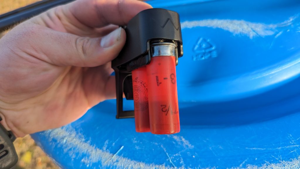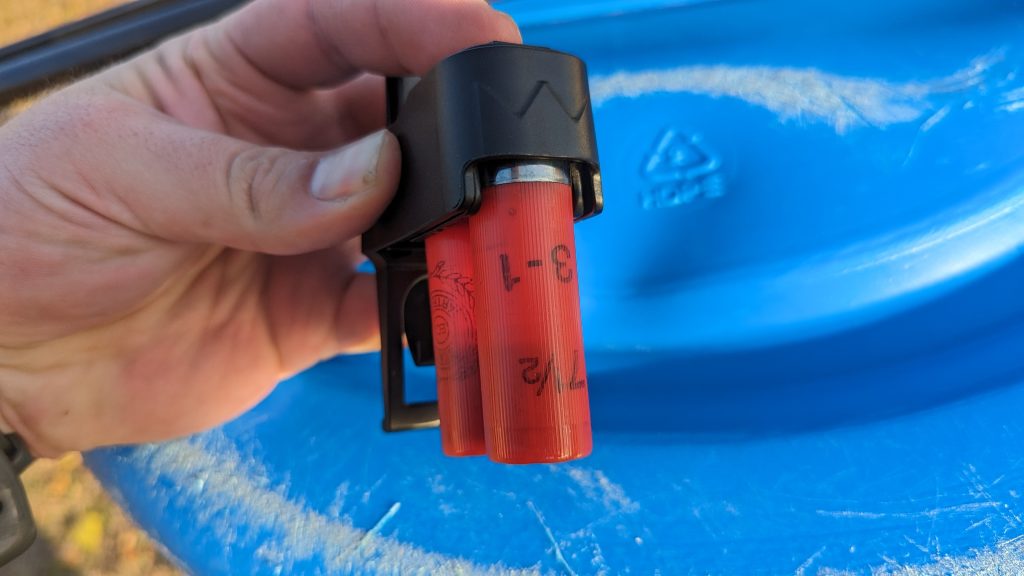 I practiced over and over and found the Pineshot to be very impressive. It’s a unique, easy-to-use device that keeps the shells stable and locked in place. Other systems rely on passive retention, but the Pineshot holds those suckers steady. It’s perfect for those more dynamic environments and in conditions where losing a shell is very possible.