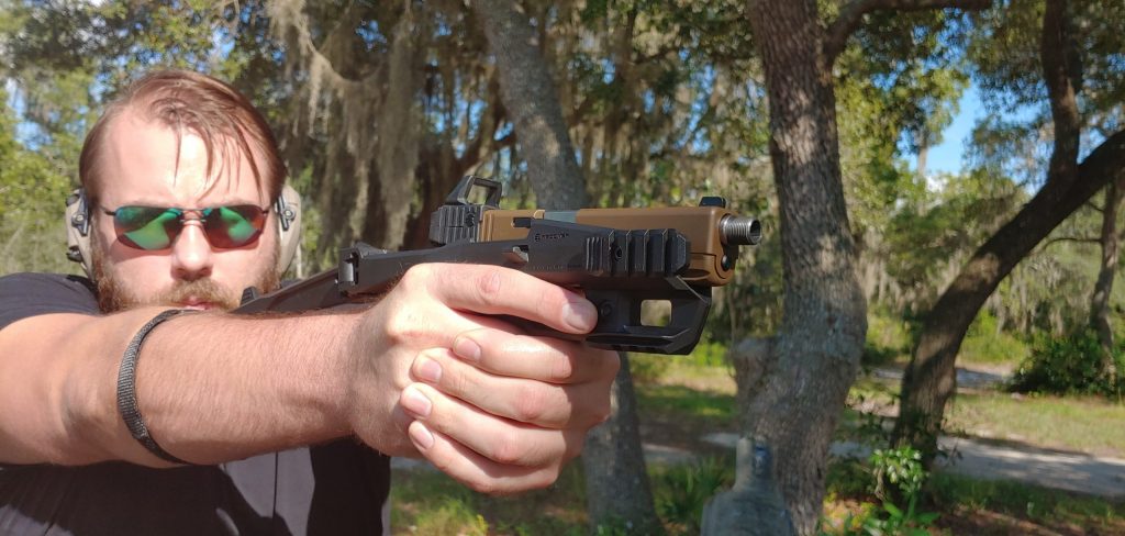 The Recover 20/20 changes the gun’s handling ergonomics a bit. Using the slide lock to drop the slide is difficult to get used to slingshotting it. Using the slide lock to lock the slide sans magazine isn’t as easy as flicking it up. Racking it from the charging handle is the only actual way to rack the slide as well. The changes aren’t too significant, but worth noting.