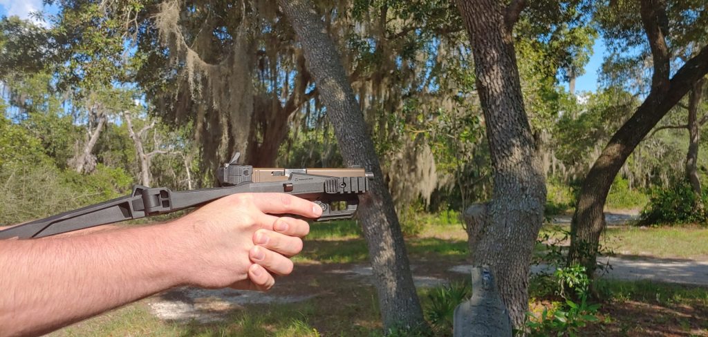 Should the brace accidentally touch your shoulder, the little bit of polymer at the back of the brace won’t provide a lot of shoulder support. It’s also somewhat short, so I imagine shooting it from a shouldered position will feel a little short.
