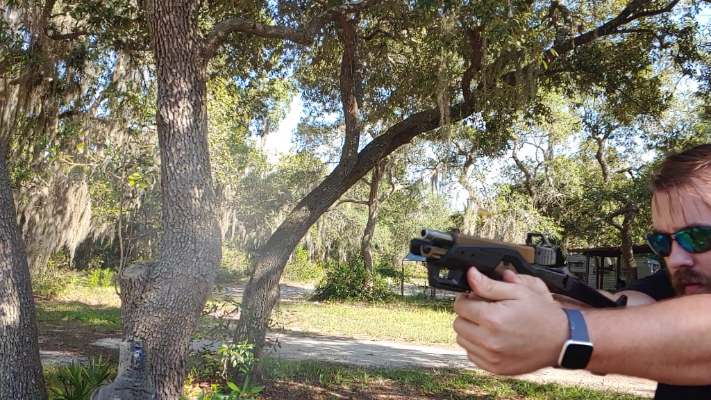 Firing with the brace is very comfortable, and it doesn’t rub you raw or cause any pain. The brace does extend what’s basically a third arm from your body, and this allows you to increase your control over the gun. The Recover 20/20 acts like the biggest beavertail in the world. It increases your leverage on the gun and gives you some real control over the muzzle flip.