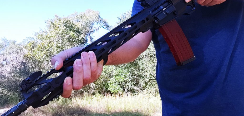 Ergonomically the RPTR is well done. It’s thin and very easy for a shooter to wrap their hand around. The rail is remarkably comfortable in the hand and even with the 15-inch model you can reach the railed sections and therefore anything you’d have mounted there.