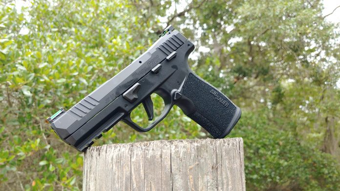 SIG made the pistol lefty friendly with ambidextrous safety and slide lock and a reversible magazine release. Since it’s 2022, SIG decided to make the P322 optic compatible. (Take a hint, Glock.) The rear sights are connected to a plate that’s removable, so you can toss on a Shield RSMc compatible red dot like the Holosun 507K.