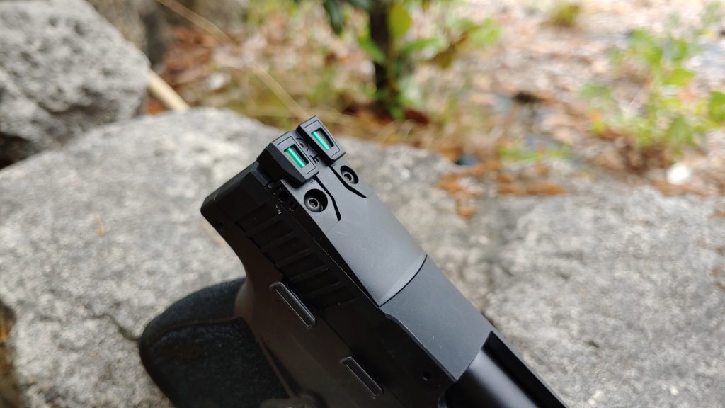 The P322’s ability to use red dots allows you to train that presentation and target focus sight picture for pennies on the dollar. The high visibility sights aren’t night sights but are easy to see like most modern combative pistol sights.
