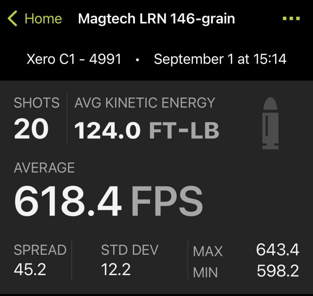 For simplicity’s sake, I did all of my shooting at 7 yards, both supported off a bag and freestyle. I also took the opportunity to use my recently purchased Garmin Xero C1 chronograph to log the muzzle velocities of the three different .38 S&W loads that LuckyGunner sent me for the review.