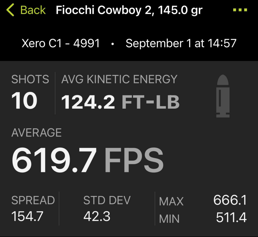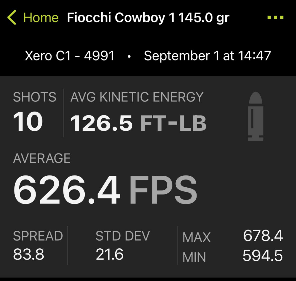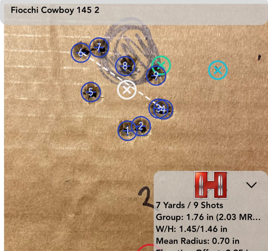 Group sizes and chronograph data are depicted below. Overall, all three loads from Magtech and Fiocchi spit out similar performance. From a user experience perspective, the Magtech lead bullet loads provided the most “authentic” shooting experience. It delivered both the distinct smell of lead bullet gunsmoke and the extra smoke that fills the air around the shooting bay.