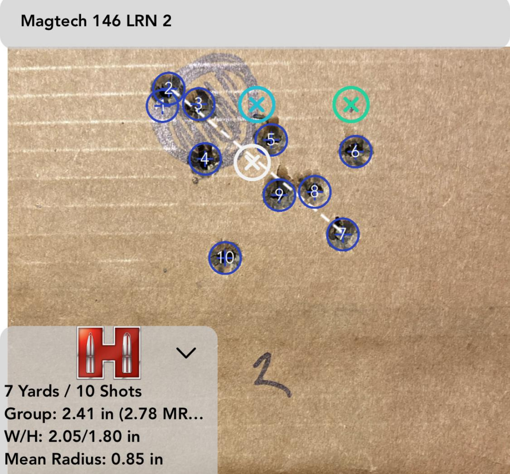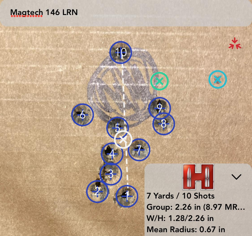 Because the distance to the target was only 7 yards, 99% of shot dispersion is assumed to be my “error.” Regardless, I still included shot-group data below.