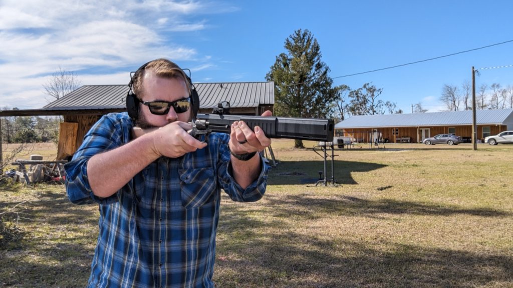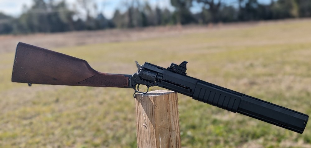 The worst part about the Rancher is how slow it is to reload because I really wanted to keep shooting. Have you ever tried to do a fast single-action double tap on two targets? It’s a ton of fun. The Space Carbine kit gives you something to hold onto, and the red dot makes fast shooting a breeze.