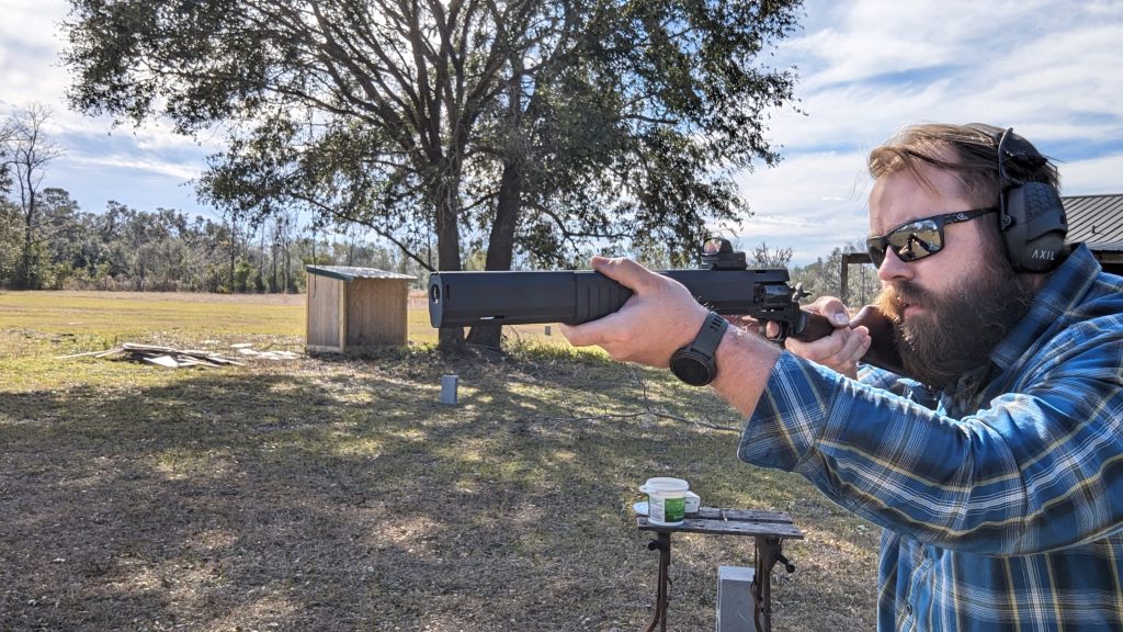 With a Burris Fastfire 4 installed, I went about zeroing the rifle. It took no time at all to get a good 25-yard zero in place. The handguard and shroud provided no issues with zeroing, and I went about plinking and having as much fun as I could. It admittedly makes the gun a ton of fun. There are optional blast shields to reduce the blast that occurs between the cylinder and barrel, but I don’t find them necessary.