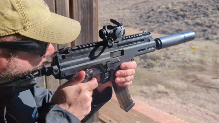 We have a 1913 tail at the rear of the gun, and the Kuna will ship with or without a brace. It’d be an easy candidate for an SBR as well.