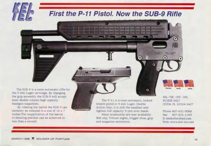 Call it nostalgia. When I was 16, I was given a Gen 1 Sub 2000 as a birthday gift, and I loved that rifle very much. It’s likely why I still love PCCs and digest 1,000 rounds of 9mm a month. Even as a fan of the KelTec Sub 2000 series, I had never heard of the Sub 9. One of my hobbies is reading old gun magazines. I was scrolling through a 1998 issue of Soldier of Fortune and saw an ad for the Sub 9.