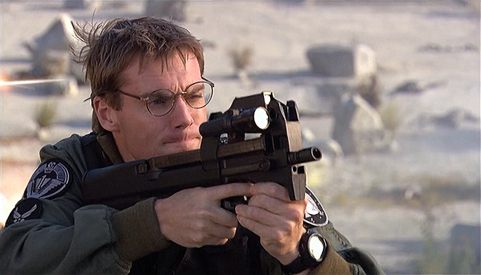 Does the Stargate show have great gun handling or impressive tactics? No, not really, but the guns they use are far from boring. In fact, whichever team armed the Stargate cast clearly had an eye for style and strived to fill the show with some seriously awesome guns. It seems like an odd thing to write about but stick with me. Let’s dive into the world of Stargate SG-1’s best guns and appreciate the tactical drip they provided.