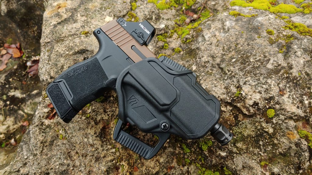 Defeating the active retention device doesn’t require your trigger finger but your thumb. It’s easy to deactivate the retention on a natural firing grip and doesn’t present the same issues the SERPA had. The bottom of the holster is opened, so my little compensator fits, and the top of the holster is cut decently low, so optics are also accommodated. The T-Series L2C fits both the P365XL and the standard P365.