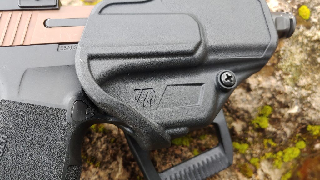 The same goes for reholstering. Your gun slides into place and locks via a trigger-mounted lock. The holster gives you enough berth to easily holster the weapon in a safe way.
