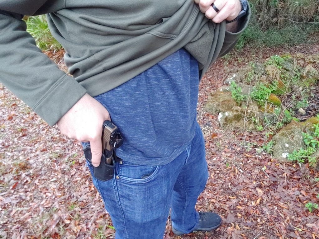 Tossing on a jacket, hoody, or slightly loose-fitting garment should take care of that problem. While it can be a little tough to conceal, the holster is super comfy. It doesn’t poke or prod when you carry the weapon, and you can hike, bike, sit in a boat, or do whatever in complete comfort.